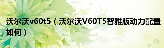 大家好,小常来为大家解答以下问题,对于沃尔沃v60t5,沃尔沃V60T5智雅版动力配置如何很多人还不知道,今天让我们一起来看看吧!