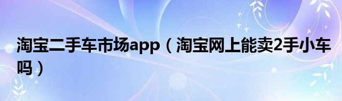 大家好,小常来为大家解答以下问题,对于淘宝二手车市场app,淘宝网上能卖2手小车吗很多人还不知道,今天让我们一起来看看吧!