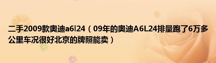 大家好,小常来为大家解答以下问题,对于二手2009款奥迪a6l24,09年的奥迪A6L24排量跑了6万多公里车况很好北京的牌照能卖很多人还不知道,今天让我们一起来看看吧!