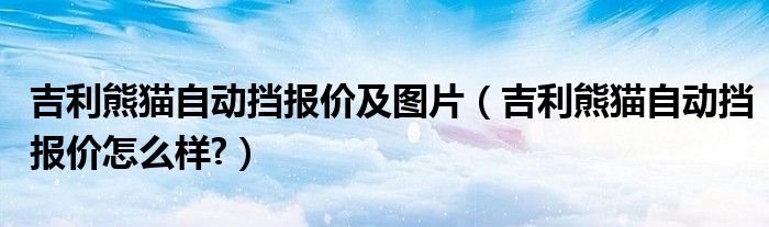 吉利熊猫自动挡报价及图片(吉利熊猫自动挡报价怎么样?)