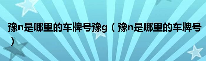 大家好,小美来为大家解答以上问题。豫n是哪里的车牌号豫g,豫n是哪里的车牌号很多人还不知道,现在让我们一起来看看吧!