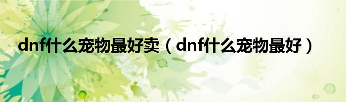 dnf什么宠物最好卖(dnf什么宠物最好)