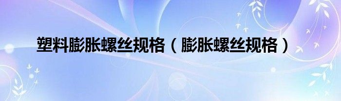 关于塑料膨胀螺丝规格,膨胀螺丝规格这个很多人还不知道,今天菲菲来为大家解答以上的问题,现在让我们一起来看看吧!