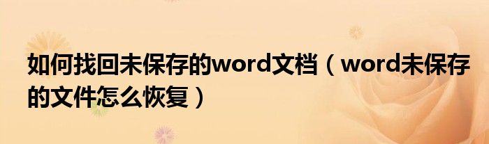 关于如何找回未保存的word文档,word未保存的文件怎么恢复这个很多人还不知道,今天菲菲来为大家解答以上的问题,现在让我们一起来看看吧!