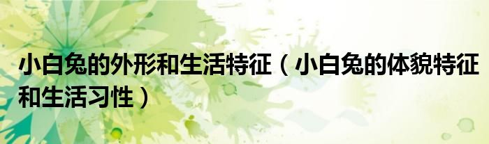 关于小白兔的外形和生活特征,小白兔的体貌特征和生活习性这个很多人还不知道,今天菲菲来为大家解答以上的问题,现在让我们一起来看看吧!