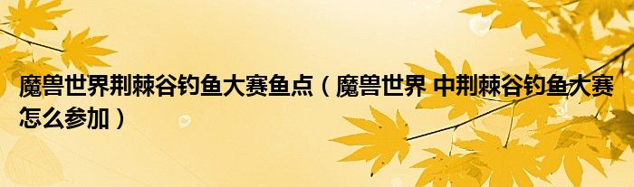 关于魔兽世界荆棘谷钓鱼大赛鱼点,魔兽世界 中荆棘谷钓鱼大赛怎么参加这个很多人还不知道,今天菲菲来为大家解答以上的问题,现在让我们一起来看看吧!