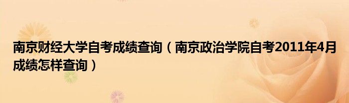关于南京财经大学自考成绩查询,南京政治学院自考2011年4月成绩怎样查询这个很多人还不知道,今天菲菲来为大家解答以上的问题,现在让我们一起来看看吧!