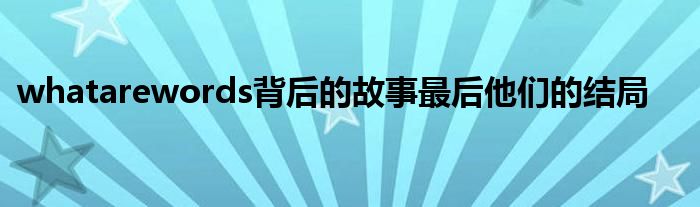 关于whatarewords背后的故事最后他们的结局这个很多人还不知道,今天菲菲来为大家解答以上的问题,现在让我们一起来看看吧!