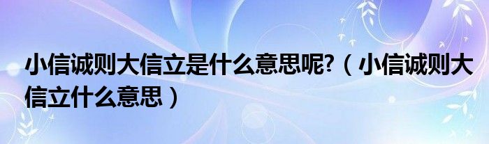 关于小信诚则大信立是什么意思呢?,小信诚则大信立什么意思这个很多人还不知道,今天菲菲来为大家解答以上的问题,现在让我们一起来看看吧!