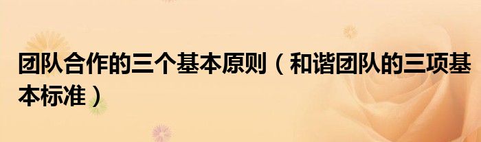 团队合作的三个基本原则(和谐团队的三项基本标准)