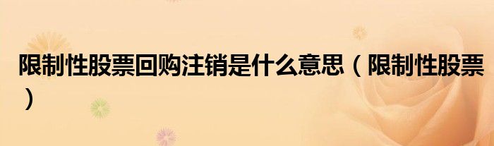 关于限制性股票回购注销是什么意思,限制性股票这个很多人还不知道,今天菲菲来为大家解答以上的问题,现在让我们一起来看看吧!