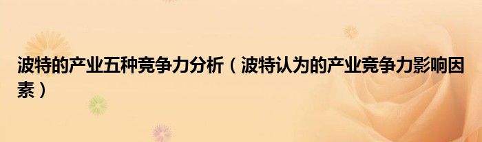 关于波特的产业五种竞争力分析,波特认为的产业竞争力影响因素这个很多人还不知道,今天菲菲来为大家解答以上的问题,现在让我们一起来看看吧!