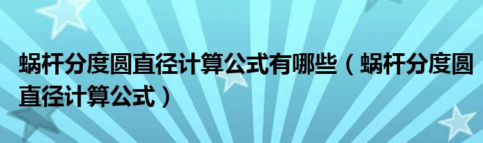 关于蜗杆分度圆直径计算公式有哪些,蜗杆分度圆直径计算公式这个很多人还不知道,今天菲菲来为大家解答以上的问题,现在让我们一起来看看吧!