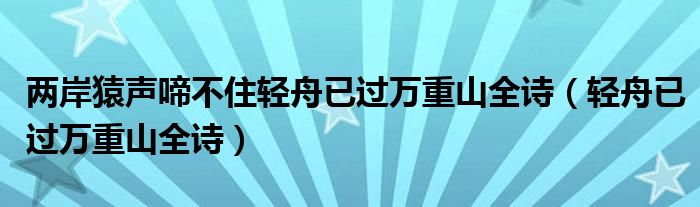 两岸猿声啼不住轻舟已过万重山全诗(轻舟已过万重山全诗)