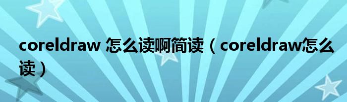 关于coreldraw 怎么读啊简读,coreldraw怎么读这个很多人还不知道,今天菲菲来为大家解答以上的问题,现在让我们一起来看看吧!