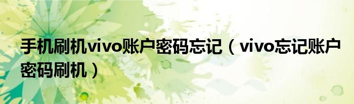 大家好,小晋来为大家解答以下问题,关于手机刷机vivo账户密码忘记,vivo忘记账户密码刷机很多人还不知道,今天让我们一起来看看吧!