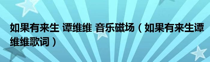 如果有来生 谭维维 音乐磁场(如果有来生谭维维歌词)