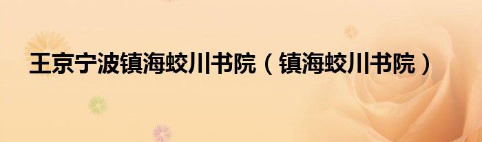 王京宁波镇海蛟川书院(镇海蛟川书院)