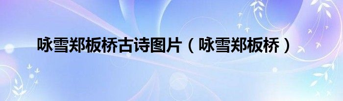 1、《咏雪》是清代诗人郑板桥所作的一首七言绝句。