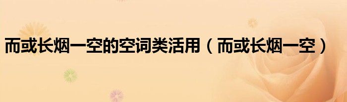关于而或长烟一空的空词类活用,而或长烟一空这个很多人还不知道,今天菲菲来为大家解答以上的问题,现在让我们一起来看看吧!