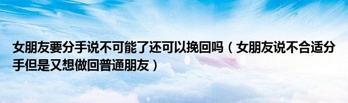 关于女朋友要分手说不可能了还可以挽回吗,女朋友说不合适分手但是又想做回普通朋友这个很多人还不知道,今天菲菲来为大家解答以上的问题,现在让我们一起来看看吧!