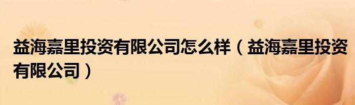 关于益海嘉里投资有限公司怎么样,益海嘉里投资有限公司这个很多人还不知道,今天菲菲来为大家解答以上的问题,现在让我们一起来看看吧!
