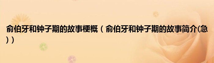 关于俞伯牙和钟子期的故事梗概,俞伯牙和钟子期的故事简介(急)这个很多人还不知道,今天菲菲来为大家解答以上的问题,现在让我们一起来看看吧!