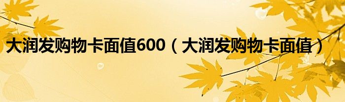 关于大润发购物卡面值600,大润发购物卡面值这个很多人还不知道,今天菲菲来为大家解答以上的问题,现在让我们一起来看看吧!