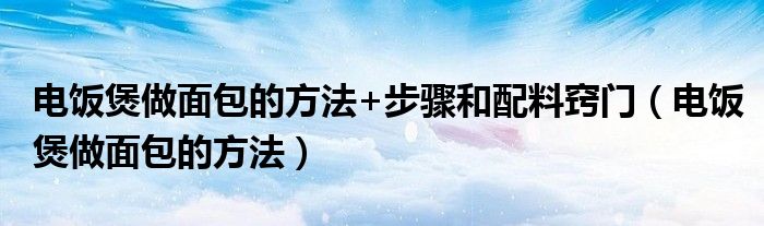 关于电饭煲做面包的方法+步骤和配料窍门,电饭煲做面包的方法这个很多人还不知道,今天菲菲来为大家解答以上的问题,现在让我们一起来看看吧!