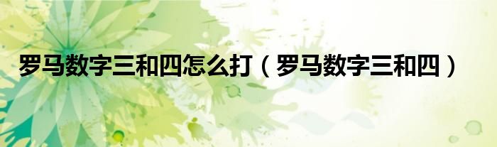 关于罗马数字三和四怎么打,罗马数字三和四这个很多人还不知道,今天菲菲来为大家解答以上的问题,现在让我们一起来看看吧!