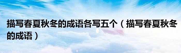 关于描写春夏秋冬的成语各写五个,描写春夏秋冬的成语这个很多人还不知道,今天菲菲来为大家解答以上的问题,现在让我们一起来看看吧!