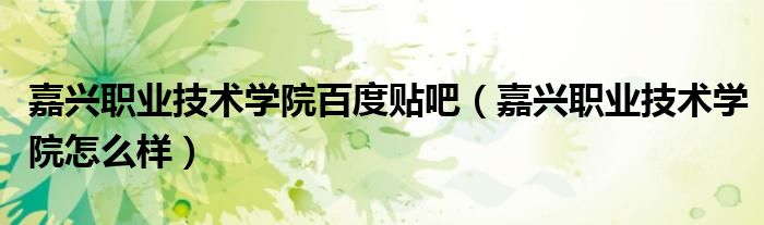 关于嘉兴职业技术学院百度贴吧,嘉兴职业技术学院怎么样这个很多人还不知道,今天菲菲来为大家解答以上的问题,现在让我们一起来看看吧!