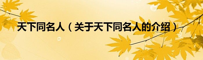 大家好,今天小乐来为大家解答以上的问题。天下同名人,关于天下同名人的介绍很多人还不知道,现在让我们一起来看看吧!