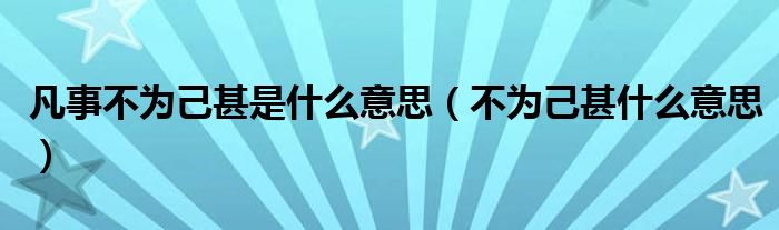 关于凡事不为己甚是什么意思,不为己甚什么意思这个很多人还不知道,今天菲菲来为大家解答以上的问题,现在让我们一起来看看吧!