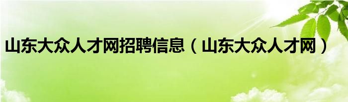 关于山东大众人才网招聘信息,山东大众人才网这个很多人还不知道,今天菲菲来为大家解答以上的问题,现在让我们一起来看看吧!