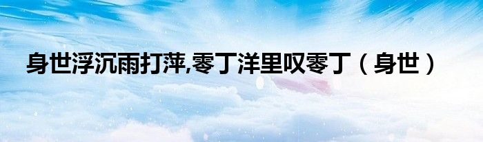 关于身世浮沉雨打萍,零丁洋里叹零丁,身世这个很多人还不知道,今天菲菲来为大家解答以上的问题,现在让我们一起来看看吧!