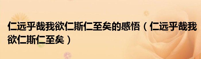 关于仁远乎哉我欲仁斯仁至矣的感悟,仁远乎哉我欲仁斯仁至矣这个很多人还不知道,今天菲菲来为大家解答以上的问题,现在让我们一起来看看吧!