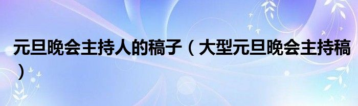 关于元旦晚会主持人的稿子,大型元旦晚会主持稿这个很多人还不知道,今天菲菲来为大家解答以上的问题,现在让我们一起来看看吧!