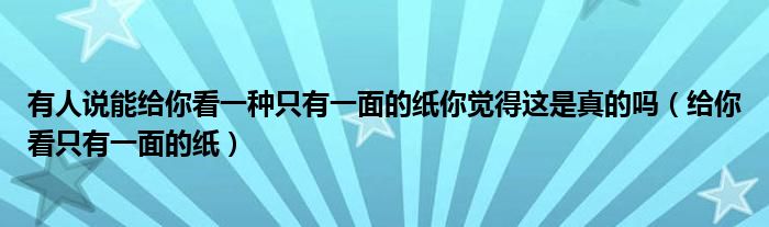 关于有人说能给你看一种只有一面的纸你觉得这是真的吗,给你看只有一面的纸这个很多人还不知道,今天菲菲来为大家解答以上的问题,现在让我们一起来看看吧!