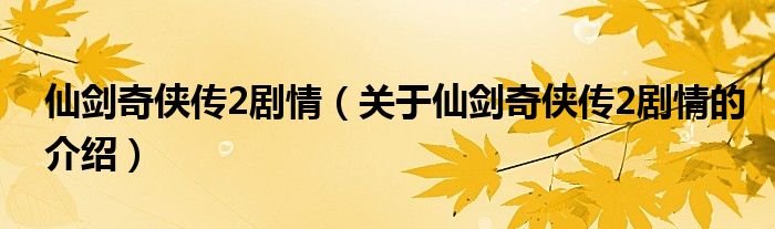 大家好,小都来为大家解答以上的问题。仙剑奇侠传2剧情,关于仙剑奇侠传2剧情的介绍很多人还不知道,现在让我们一起来看看吧!