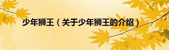 大家好,小都来为大家解答以上的问题。少年狮王,关于少年狮王的介绍很多人还不知道,现在让我们一起来看看吧!