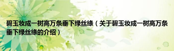 碧玉妆成一树高万条垂下绿丝绦(关于碧玉妆成一树高万条垂下绿丝绦的介绍)