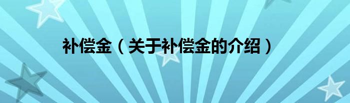 大家好,小都来为大家解答以上的问题。补偿金,关于补偿金的介绍很多人还不知道,现在让我们一起来看看吧!