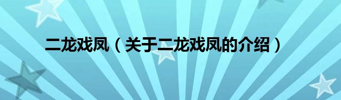 大家好,小都来为大家解答以上的问题。二龙戏凤,关于二龙戏凤的介绍很多人还不知道,现在让我们一起来看看吧!