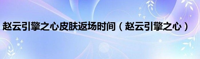 大家好,雨雨来为大家解答以上问题,赵云引擎之心皮肤返场时间,赵云引擎之心很多人还不知道,现在让我们一起来看看吧!