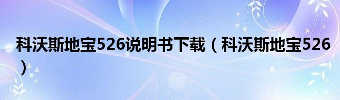 大家好,来宝来为大家解答以下问题,科沃斯地宝526说明书下载,科沃斯地宝526很多人还不知道,今天让我们一起来看看吧!
