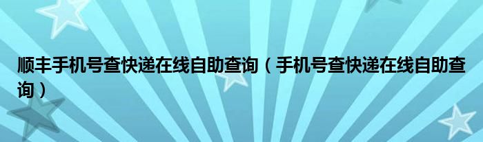 顺丰手机号查快递在线自助查询(手机号查快递在线自助查询)