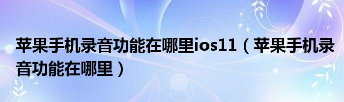 苹果手机录音功能在哪里ios11(苹果手机录音功能在哪里)