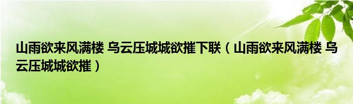 大家好,小晋来为大家解答以下问题,关于山雨欲来风满楼 乌云压城城欲摧下联,山雨欲来风满楼 乌云压城城欲摧很多人还不知道,今天让我们一起来看看吧!