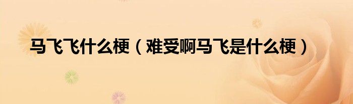 大家好,小晋来为大家解答以下问题,关于马飞飞什么梗,难受啊马飞是什么梗很多人还不知道,今天让我们一起来看看吧!
